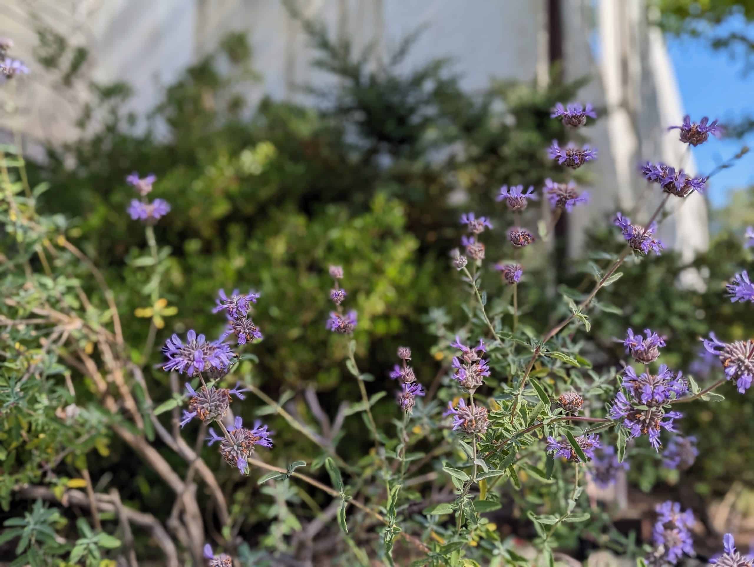 Keystone species—our own, local ecological powerhouse plants— in this garden include holly leaf cherry, pink flowering and golden currant, California lilac, manzanita, snowberry, sages, sagebrush, mountain mahogany, hazelnut, buckwheat, native strawberry ocean spray, honeysuckle, lupine, penstemon, and elderberry.