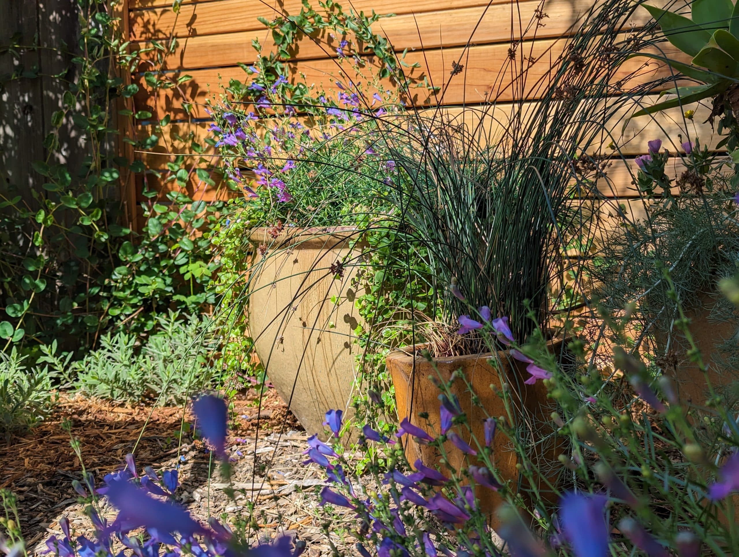 Jennifer’s garden shows how you can turn a space that had white quartz rocks covering the front garden, concrete encasing the entire back garden, and junipers in the parking strips, and make a silk purse out of it. (Also, there was a palm tree.) Over the last twenty years, the family has added every plant except for the lemon tree.