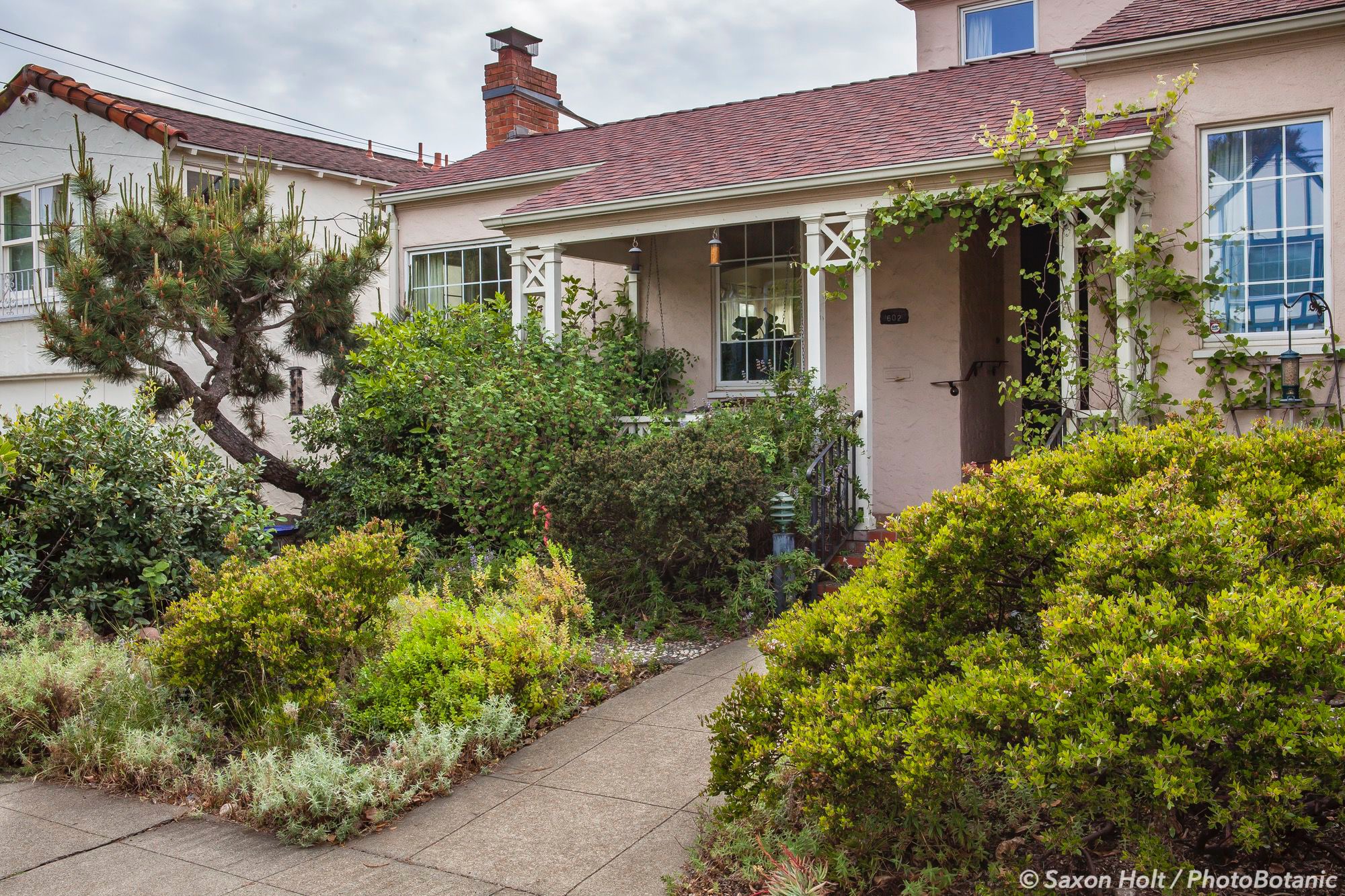 • Native strawberry functions as a ground cover in the parking strip (and, as more than fifty species of butterflies and moths can lay their eggs on this plant, is a great ecological asset).