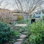 - The driveway in the back yard was removed and replaced with flagstone, which allows water to seep into the soil, keeps the garden green longer, replenishes the aquifer, and protects the local creek from scouring.