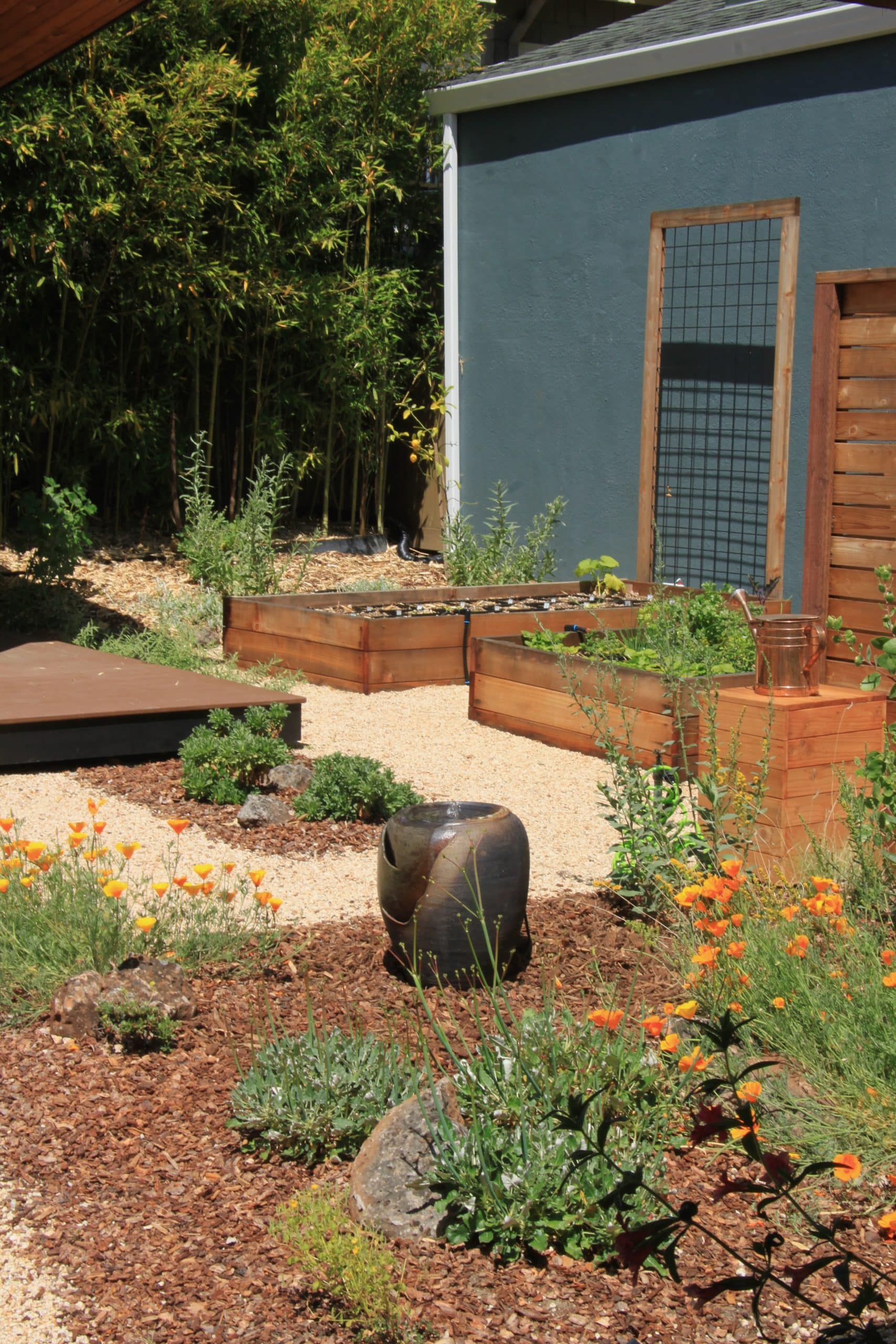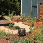 Lucinda keeps bees in the back yard. The hives are located on the south side of the ADU. If being near a beehive would pose a problem for you, please visit other gardens.