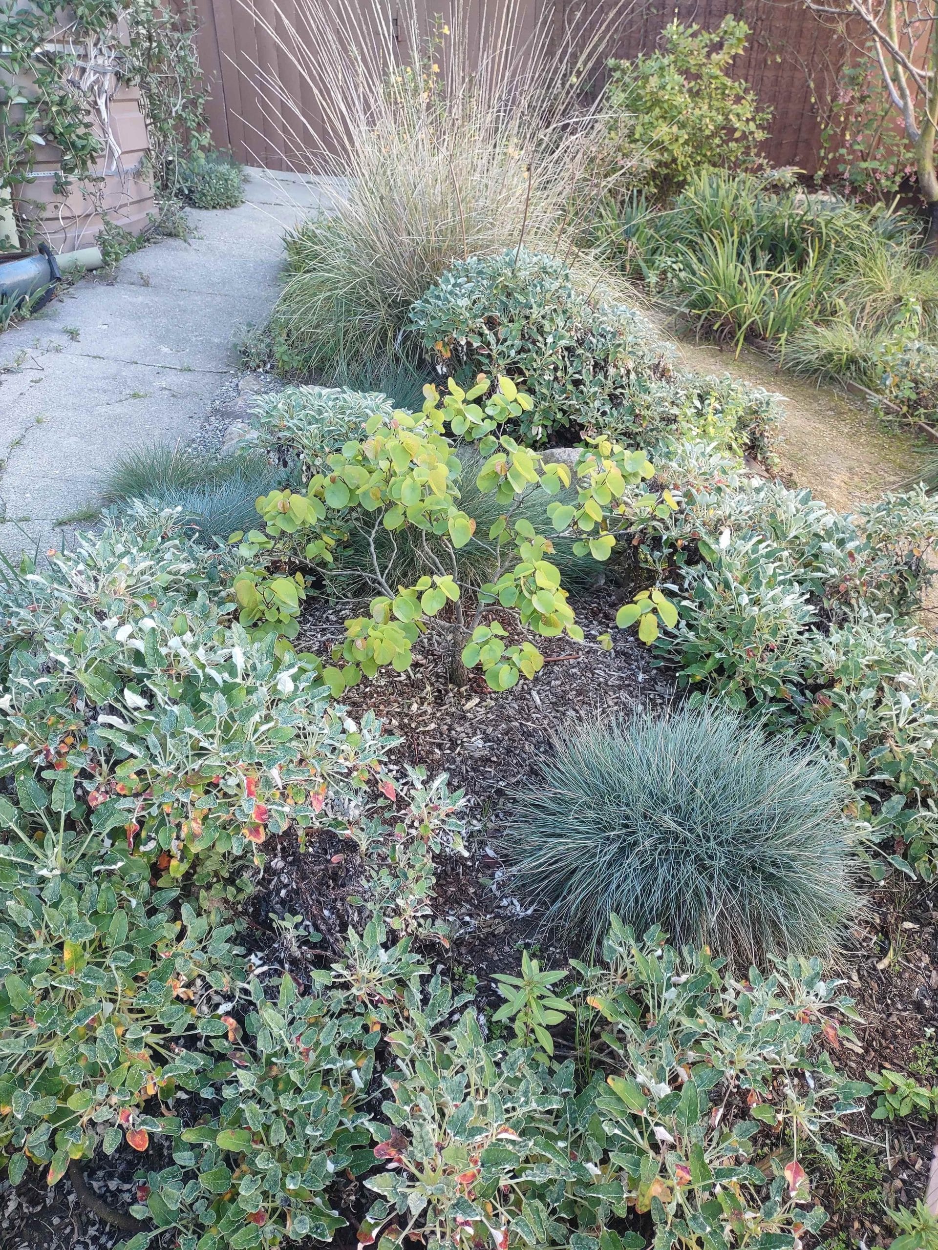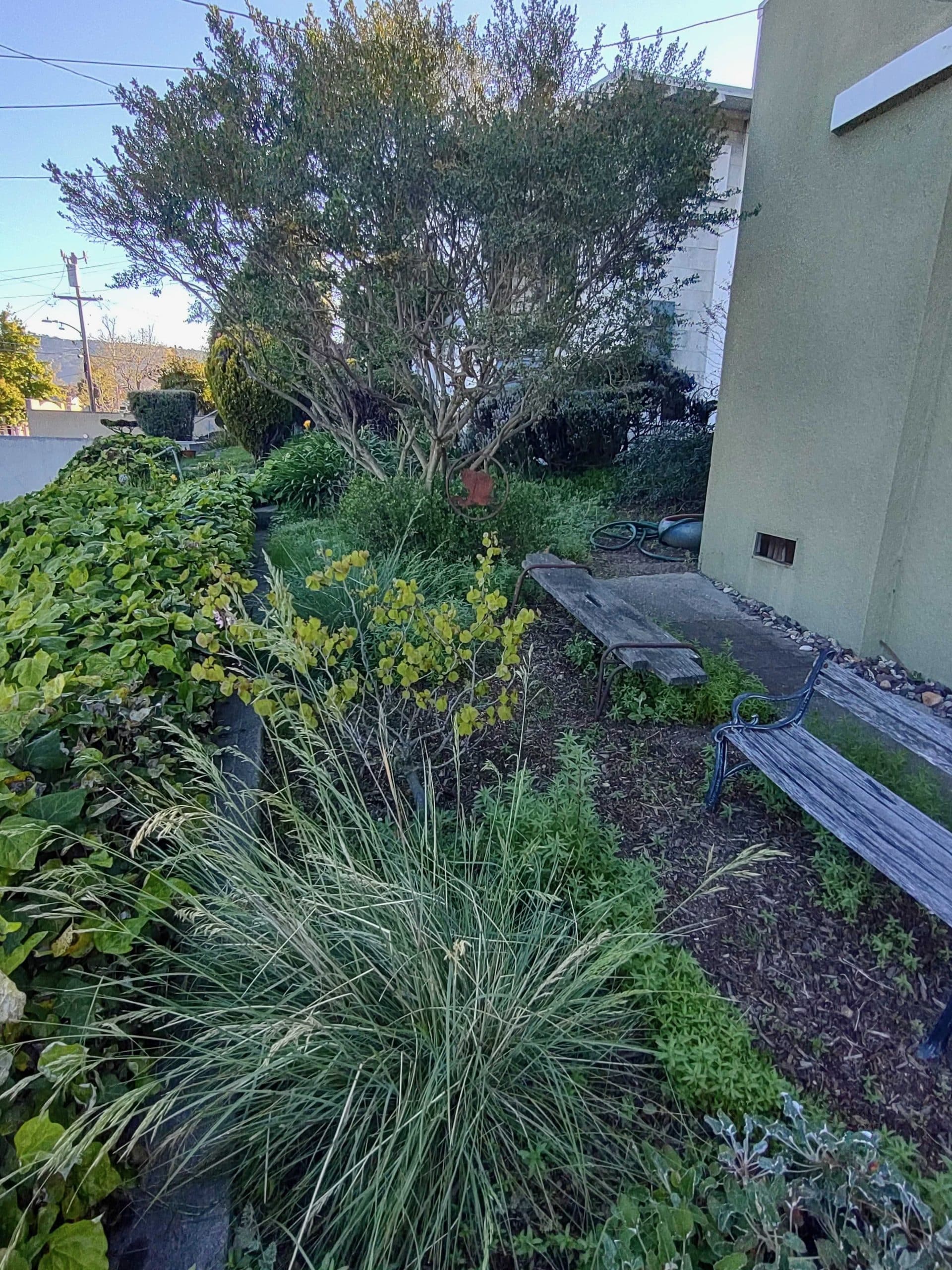 • Michael and neighbors planted and maintain the natives in the large median at 41st and Carrington. Check out the beautiful, collection of buckwheats (St. Catherine’s lace, rosy, California, and sulfur) that rub shoulders with manzanitas and bunchgrasses. This area receives a minimal quarterly maintenance from neighbors.