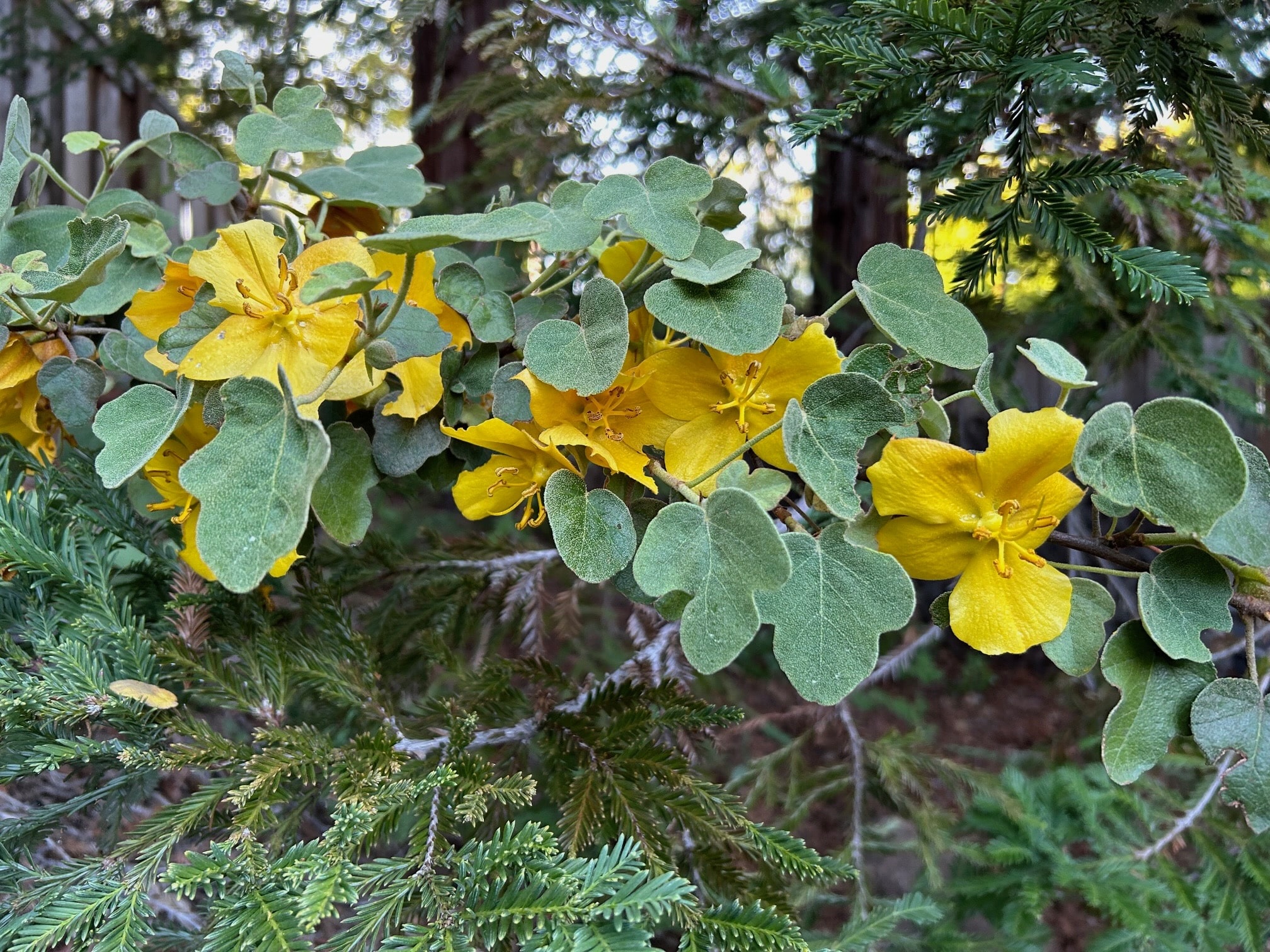 Native flowers, seeds, berries, and a fountain attract more than thirty species of birds, including lesser gold and house finches, titmice, chickadees, towhees, doves, and Nuttallās woodpeckers. The fuchsias and sages are alluring to a constant stream of hummingbirds. Bushtits and juncos nest in the garden. Cooperās hawks occasionally zoom through the back garden and rest in a tree, taking it all in.