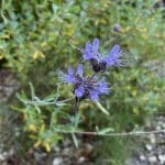 Inspired by the Bringing Back the Natives Garden Tour, Nancy went looking for a designer who could help her remove her dead lawn and twenty yearsā worth of ivy. Happily, she found Michael Thilgen of Four Dimensions Landscape Company, whose team designed and installed the garden. The front lawn was replaced with grasses, sages, California fuchsia, and yarrow. What was once the back lawn is now an attractive meadow containing bunchgrasses, blue-eyed grass, and sages, among other plants. The ivy on the slope was pulled out by handāno pesticides used here!āand there has been little resprouting. Multiple seating areas invite one to linger; pull up a chair and enjoy this peaceful haven!