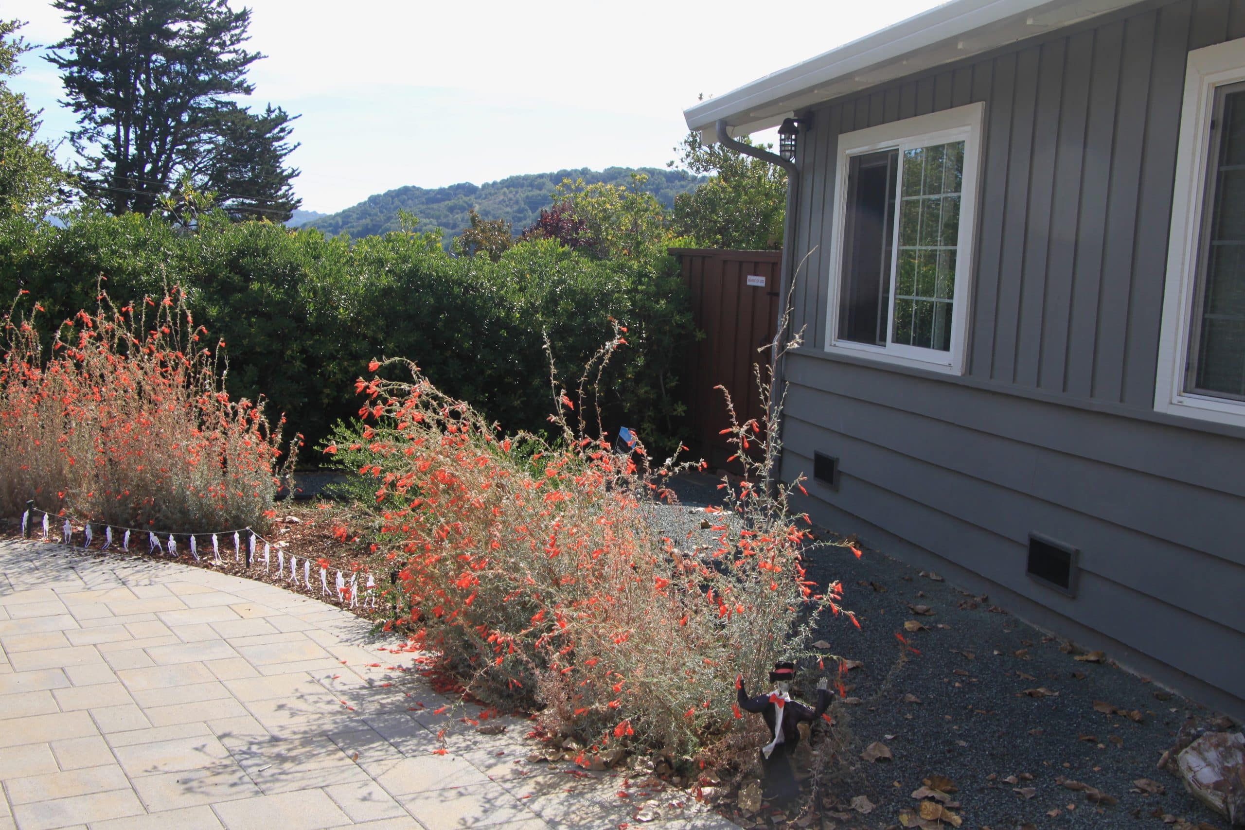 • Check out the FireScaping work that has been done in this garden: the Zone 0 clearance (nothing combustible within 5’ of the house), and the revised landscaping plan.