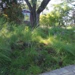 Inspired by the Bringing Back the Natives Garden Tour, Pat began removing the junipers, gravel, and weeds in her front yard. In their place she and Alexandra Ashton of Urban Flora Landscape Design planted a variety of native bunchgrasses and clarkia, lupines, penstemon, blue-eyed grass, and poppies. As the native garden expanded, Pat focused on including plants that would attract birds and pollinators—and also plants with delicious scents, such as yerba buena, hummingbird and Cleveland sage, and coyote mint. Pat happily reports that bees and hummingbirds began coming to the garden within hours of its being planted with natives.