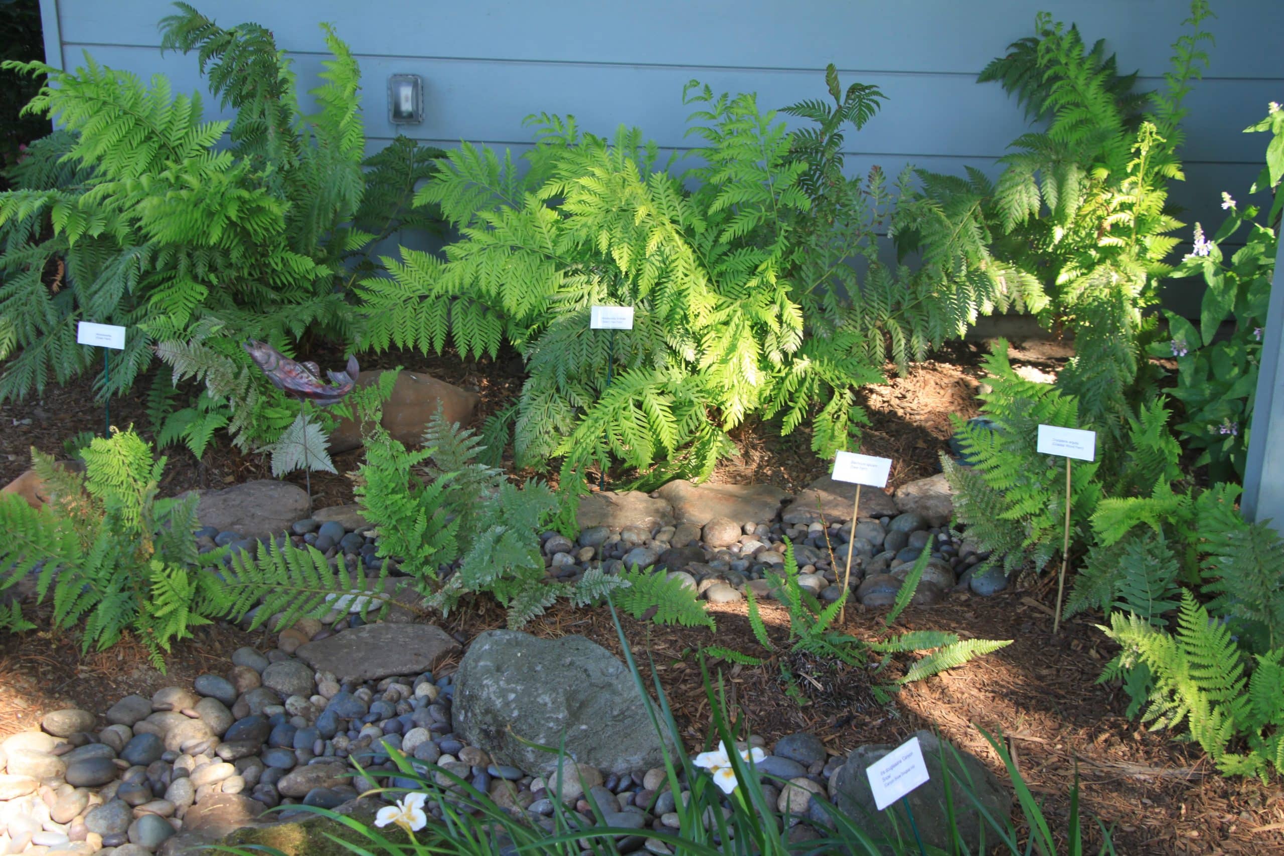 - Enjoy the whimsical artwork that is scattered throughout the garden, including metal silhouette herons, realistic-looking quail, quizzical owls, totem poles, and more.
