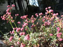Showcase feature: Tucked behind a white picket fence is Ruth’s 1885 Queen Anne Cottage, and a small, beautiful, and relaxing native plant garden. Designed by Rosemary Zappulla of Wildrose Gardens to provide year-round color (this garden is a riot of poppies in the spring); use a minimum of water; and be low maintenance, this compact garden completely fits the bill. The contoured raised berm provides drainage for rosy buckwheat, manzanita, and yarrow. Buckeye, coast silk tassel, coffeeberry, and California lilac will create a ring of privacy screens when mature. The attractive flagstone patio is the perfect venue from which to sit and enjoy it all.