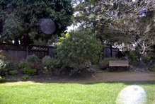 - An oak and buckeye border the garden.