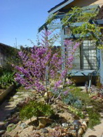 Gardening for Wildlife: A diversity of native plants, bird feeders, rockpiles and logs, fallen leaf debris, a butterfly puddling area, nesting boxes, birdbaths and a splashing fountain make this garden a haven for wildlife. Forty-nine species of birds have been seen from this garden. The list includes black-shouldered kites, cedar waxwings, northern flickers, ash-throated fly catchers, black-headed grosbeaks, Cooper’s and red-tailed hawks, ruby-crowned kinglets, hooded and northern orioles, and great-horned owls. In the daytime, lizards scurry through the garden and birds rest beneath the cover of plants, feast on berries, seeds, and insects or sing from the trees. At dusk, a family of skunks parade through their hole under the fence, while hummingbirds enjoy their last sip of nectar before nightfall. At night, raccoons forage for fruit and other delicacies, while an owl hunts overhead. Coyotes can occasionally be seen in the adjacent open space.