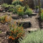 Keystone species—our own, local ecological powerhouse plants— in this garden include coast live oaks, California lilac, sagebrush, buckwheat, coyote brush, elderberry and sugar bush.